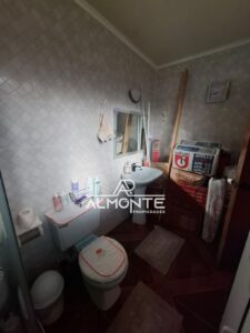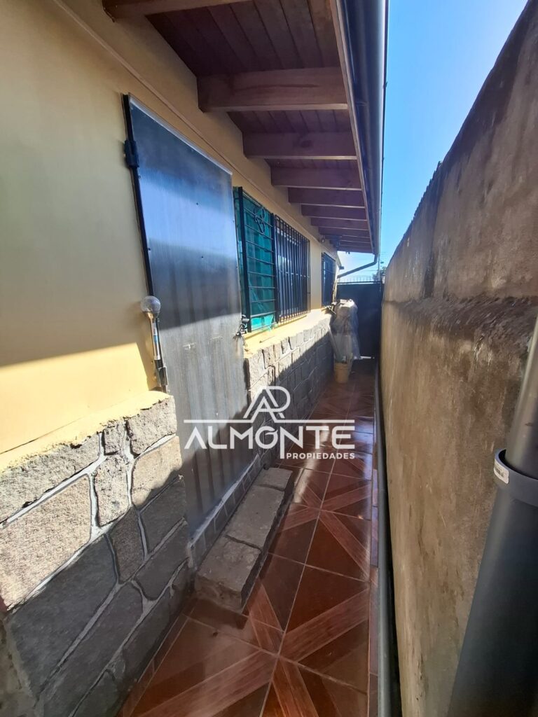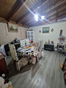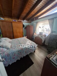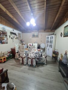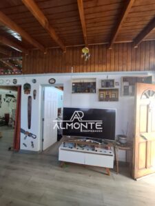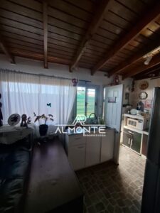 Casa con diseño simple, con techo plano y una estructura de base de piedras, madera con vigas a la vista. Cuenta con Living amplio, cocina americana, medio baño, comedor independiente,  dormitorio principal grande con closet, segundo dormitorio pequeño, baño  con shower door, loggia.
